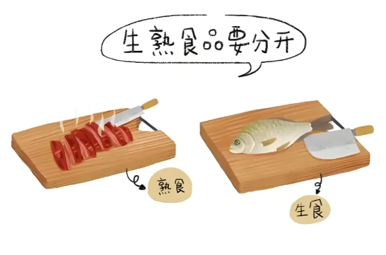 生食和熟食上存在不同的细菌,两者同时接触一把刀,将可能出现交叉污染的问题,有害健康。